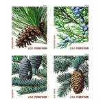 The U.S. Postal Service issued its first commemorative ???Forever??? stamp in 2010 with a Holiday Evergreens set of four. ?Pine cones and berries are shown from four different conifer (evergreen) trees ??C ponderosa pine, eastern red cedar, blue spruce, and balsam fir. ?Pine trees are frequently used for decoration in the holiday season months, a welcome splash of living greens during the cold, dreary months.