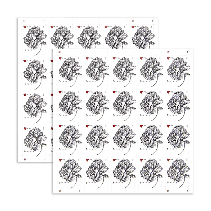 The rose was chosen for the 2015 Weddings Forever stamp because it is a universal symbol of love.??This stamp was issued for use on wedding RSVP cards and thank you notes.??A two-ounce rate Vintage Tulip stamp was released at the same time for use on wedding invitations and greeting cards that require extra postage.