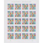 The new Mystery Message Forever stamp is designed to put your sleuthing skills to the test! Featuring bright colors and interesting shapes, the stamp design is a visual riddle spelling out a difficult-to-discern message. Each colorful square contains a letter in an interesting pattern.