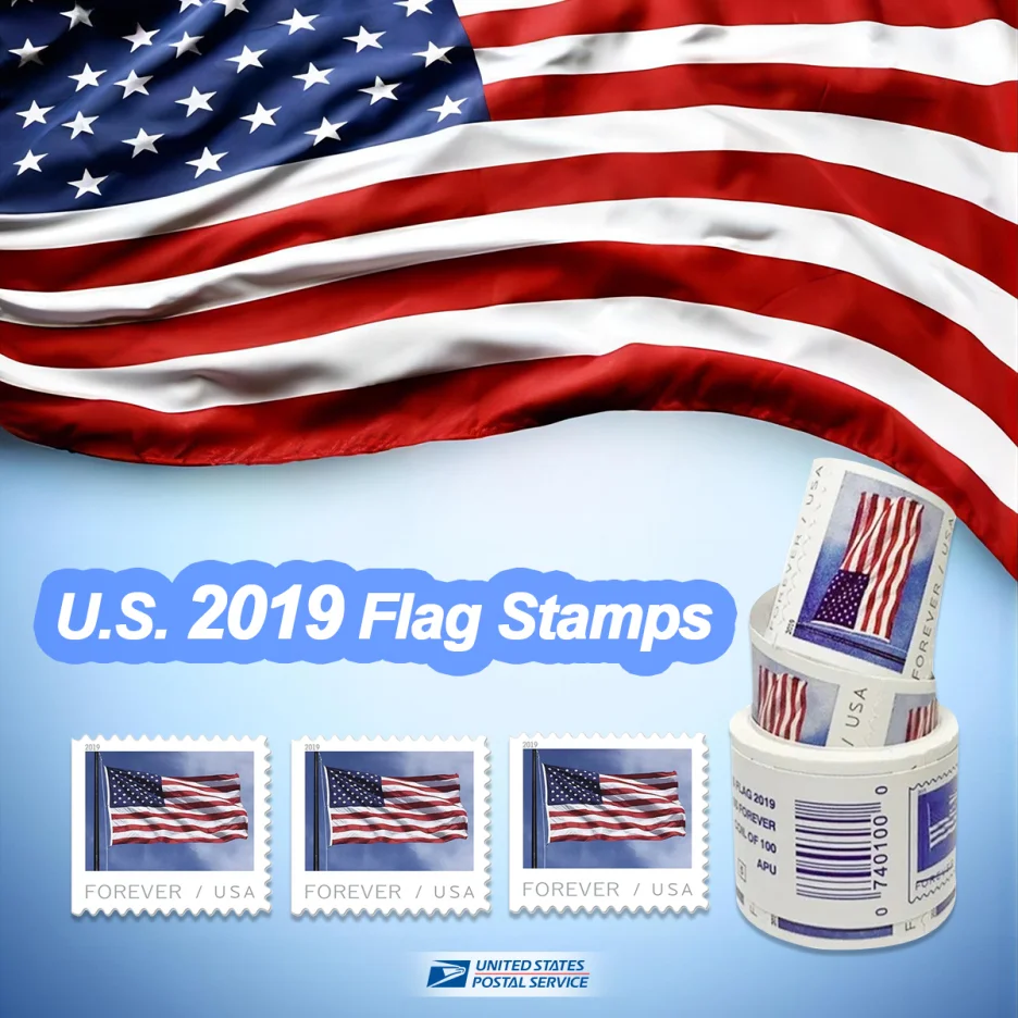 With this new 2019 stamp, the Postal Service? celebrates the American flag, the most recognizable symbol of our nation. The stamp features a U.S. flag, one of several on the flagpoles near the end of Chicago??s Navy Pier, waving in a May breeze. The photograph was taken by art director Antonio Alcal??.