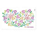 The stamp design highlights the words, ??Yes, I Do?? nestled in a bouquet of flowers in the shape of a heart on a white background. A similarly designed companion stamp, Where Dreams Blossom, issued in 2013, is available for response cards, save-the-date notices, thank-you notes, and other correspondence. The Yes, I Do stamp artwork was designed by Michael Osborne under the direction of Ethel Kessler. The words ??two ounce?? on this stamp indicate its usage value. Like a Forever stamp, this stamp will always be valid for the rate printed on it. The initial price and value for this stamp is 71 cents.